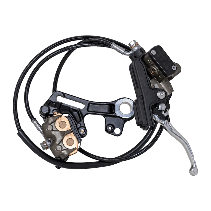 Includes lever, handlebar mount, reservoir, cable, brake line, caliper and brake pads.